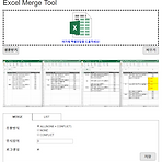 ExcelMergeTool (엑셀머지툴) - 여러개 엑셀파일을 합쳐주는 도구 엑셀파일을 여러사람이 나눠서 작업한 뒤,일일이 하나의 파일로 합쳐주는 작업이 너무 힘들어서 만들게 되었습니다. [MERGE]같은 시트, 같은 셀의 데이터를 하나의 파일로 합쳐줍니다.(중복된 데이터는 무시)(CONFLICT 모드인 경우, 파일명이 명시됩니다.) [LIST]같은 시트, 리스트 형태로 된 정보를줄 단위로 합쳐줍니다. [사이트] http://ExcelMergeTool.com 감사합니다. :)